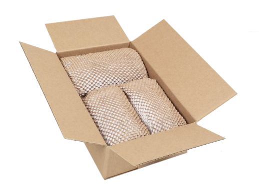 Một trong những giải pháp thay thế là màng bọc làm từ bìa carton sóng tái chế. Thay vì thải bỏ hoặc tái chế bìa carton sau sử dụng, loại vật liệu này được tái sử dụng như một lớp đệm chống sốc cho sản phẩm. Những đường cắt nhỏ được tạo ra trên bề mặt giúp hình thành hiệu ứng xếp lớp giống như đàn accordion, giúp hấp thụ va đập tương tự như màng bong bóng.