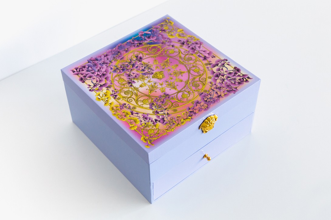 Versace’s pastel purple box not only comes with the delicious Chinese snack, but it also contains ring compartments and two spacious sections for your to store your jewellery.