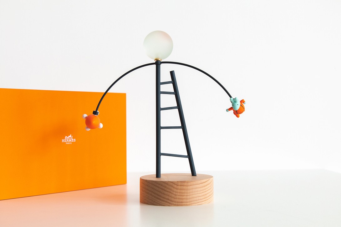 Hermès’ box comes with characterful figurines that adorn a spinning lamp